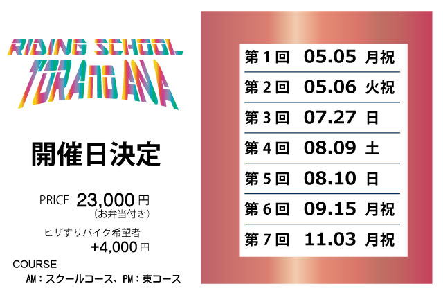 2025年ライディングスクール虎の穴の日程が決定しました!