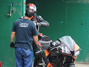 ・最初の走行はスタッフが先導します。コースイン・コースアウトの仕方を確認して同じようにコースイン・コースアウトして